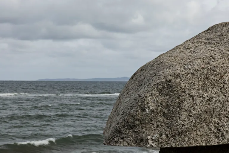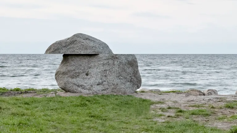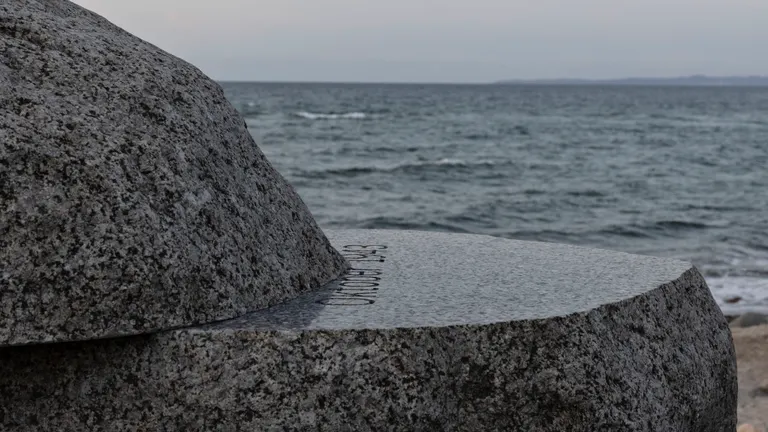Forskudt Horisont, 2023, opført på Mindegrunden, Nordre Strandvej 22, 3250 Gilleleje Kunstværket består af en gennemskåret granitsten med inskription, to egetræsbænke og et trappeanlæg af natursten med et egetræsgelænder. Stenen er 300 cm lang, 170 cm bred og 185 cm høj, og den vejer 10 ton.