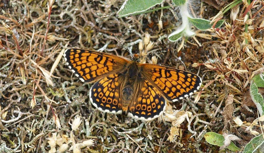 Okkergul Pletvinge (JPG) (Melitaea cinxia) Faktablad fra Lepidopterologisk Forening