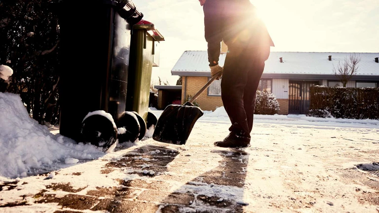 Brug grus eller salt, og ryd for sne, inden du kaster det ud.